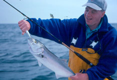 Timing is everything. At least it was for Salt Water Sportsman Managing Editor Tom Richardson during a recent light-tackle bluefishing trip on the southern coast of Cape Cod. We were fast into them, too, catching six- to eight-pounders on surface plugs just about every time we located working birds. It was a classic blitz, with fish being released as fast as they were brought aboard. And that's when it happened.