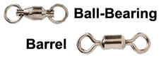 There are many types of swivels designed to match specific fishing applications. However, two basic designs cover most salt water needs: barrel and ball-bearing.