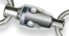 ![]() This cutaway view of a ball-bearing swivel shows how the bearings are positioned to reduce friction. |