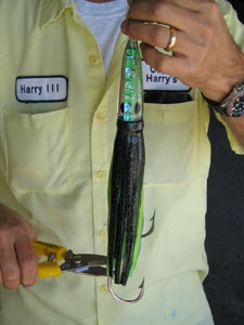 Step 7: (right) The short skirt prevents the hook from fouling when the Wahoo Icer is trolled at high speed.