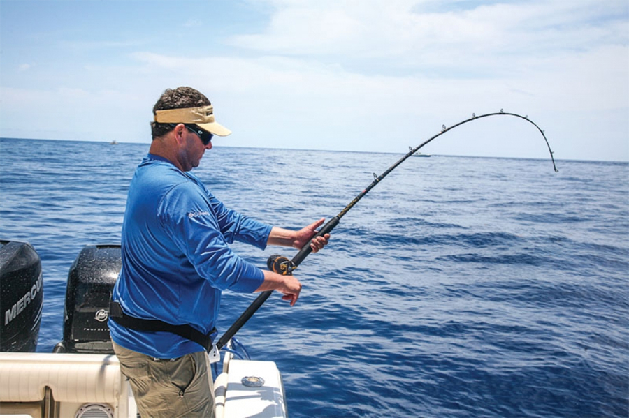 We used level-wind star drag reels filled with 20-pound monofilament. Given the current and the power of a big blackfin, short fights are rare. Most of our 20-pound-class fish took nearly half an hour to boat. It’s fun and challenging, yet the lengthy fights could prove costly when sharks abound.