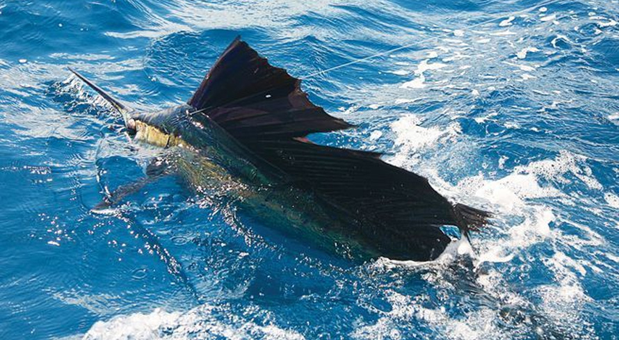 Spinning tackle is ideal to sight-cast for sails in shallow water (above).