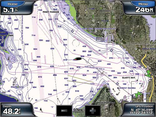 If I'm heading out to troll offshore, for example, I'll study the chart to see where specific deep-fathom curves run closest together. I'll then place the cursor on that spot, cruise to the area and begin trolling. These tight contour lines reveal a quickly descending bottom as opposed to a gradual bottom decline (shown by contour lines that are farther apart from each other). Should a strong current wash over these zones, upwellings and concentrations of bait could yield good fishing.
