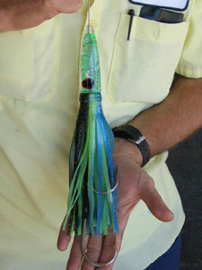 For another option, place the icer in the shotgun: 400 to 600 feet back. Pair it with the 16-ounce trolling sinker and watch the wahoo nail it.