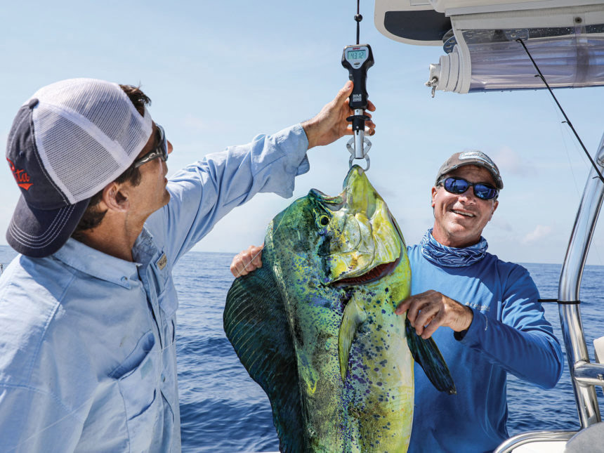 Bruiser dolphin are worth weighing on a scale, even to brag with buds.