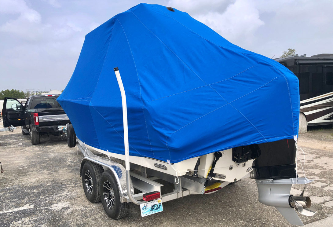 ENCLOSURE & COVER - Another long-standing relationship, George uses Drew Caterson with Action Canvas in Marathon, Florida Keys, for his enclosure and cover work. A perfectionist, Drew fabricated the console enclosure on George's 214 and also the full storage cover.