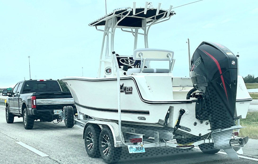 Mako's 214 was designed with comfort, sea-worthiness and fish-ability in mind, and George tricked out his to the hilt; more on this later. With a beam of 8' 6" and actual length of 21' 5", George's new 214, fully-loaded, weighs around 5,000 lbs.
