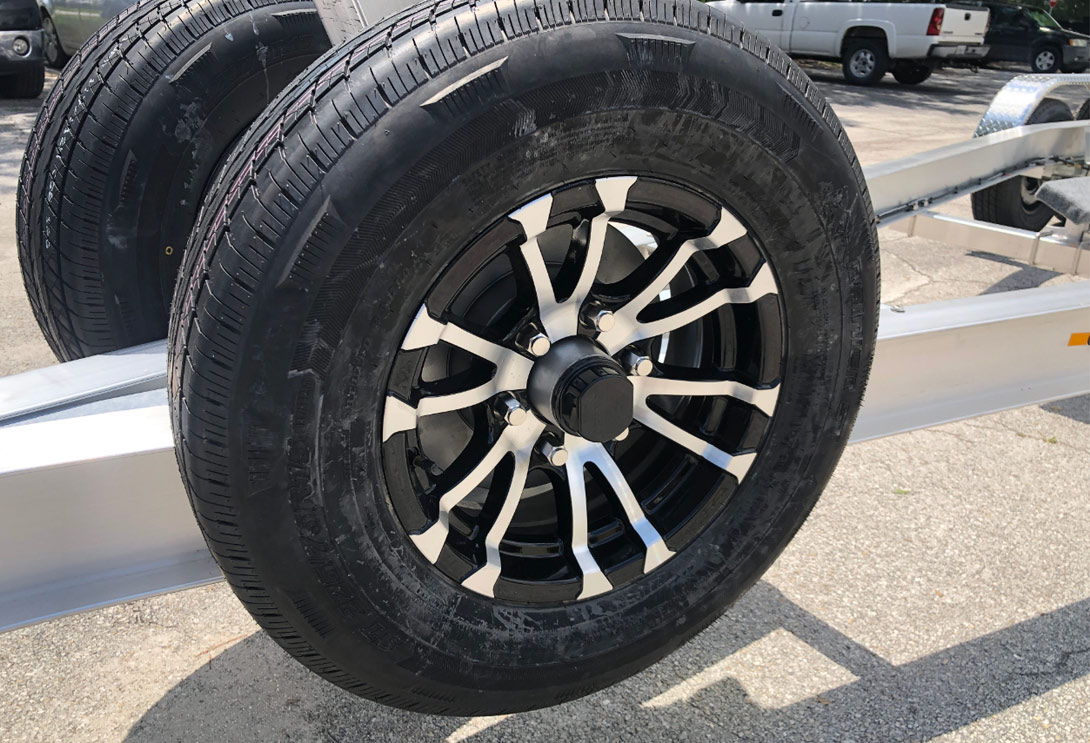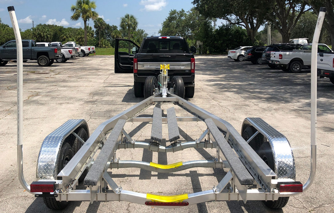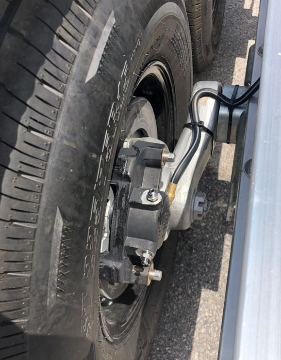 FLOAT-ON TRAILERS - George's 214 is supported by a custom-built FLOAT-ON trailer. Built with a load-rating well above the weight of a fully loaded 214, the trailer sports twin axles with hydraulic surge brakes and 15-inch aluminum wheels. Because of the extensive traveling, there are two spares complete with hubs and spindles.
