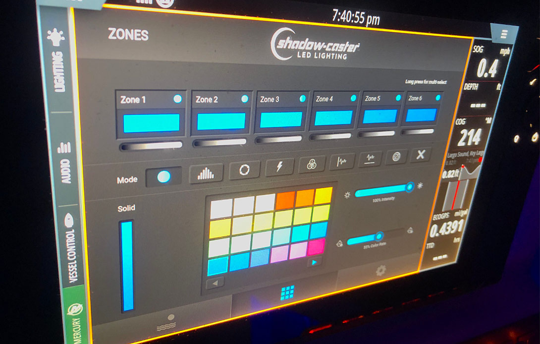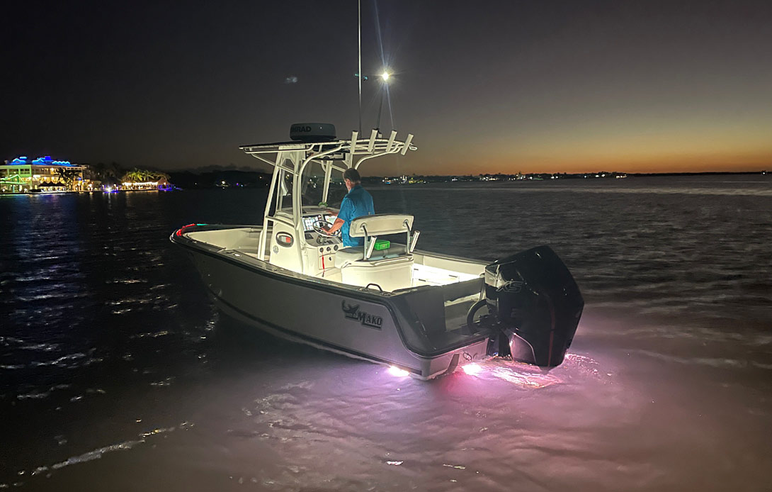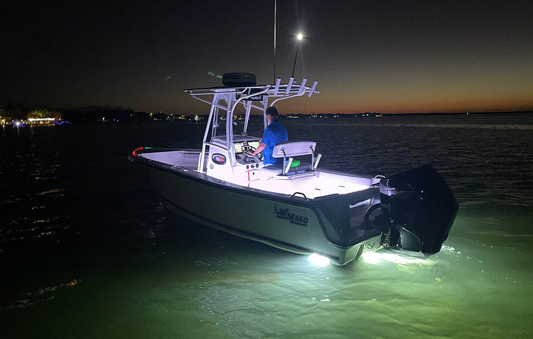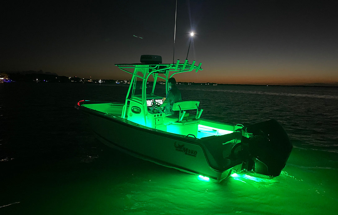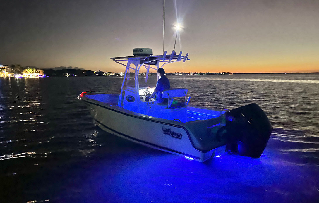 COLORS GALORE - Shadow-Caster Marine LEDs provide George's Mako 214 with the ability to attract bait and game fish during low-light conditions and evenings. To illuminate the cockpit, the controller comes with 12 standard colors pre-programmed in with almost unlimited customizable color combinations.