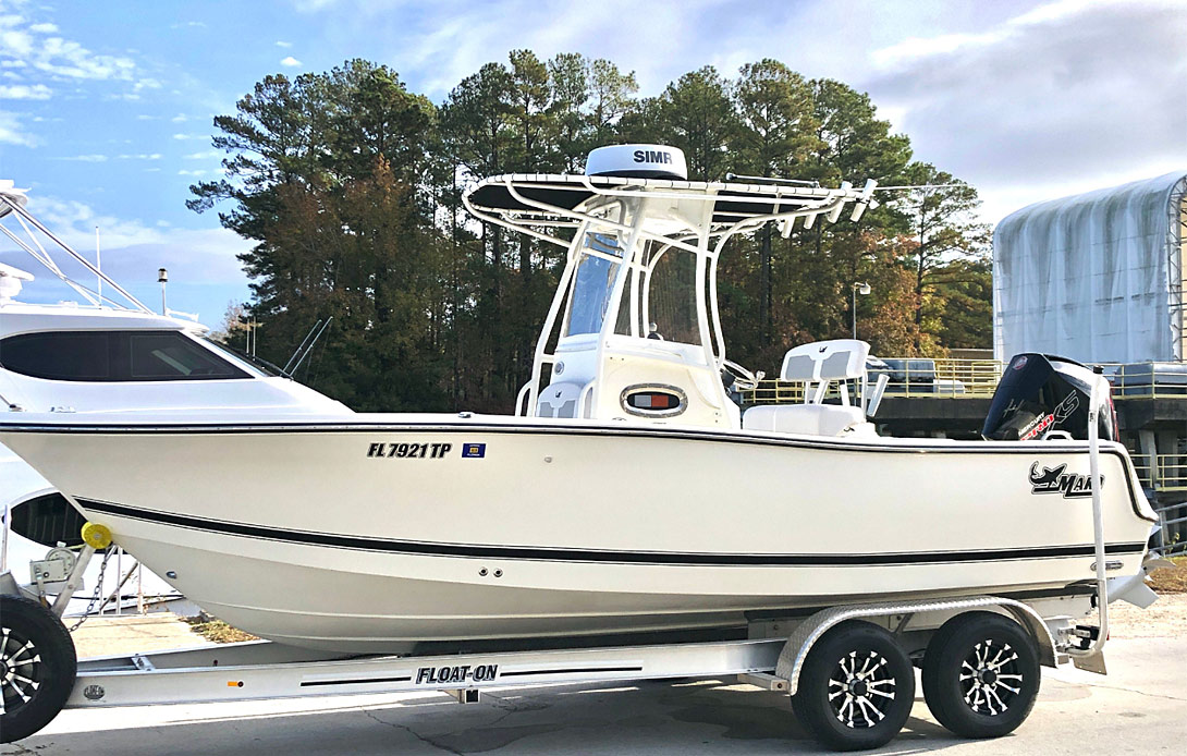 For chasing game fish in bays, sounds and along the coast, George tricked out a new Mako 214 deep-V center console, powered by a Mercury 250hp V8 ProXS outboard. A trailer manufactured by FLOAT-ON assures the vessel gets to and from its destinations, regardless of distance.