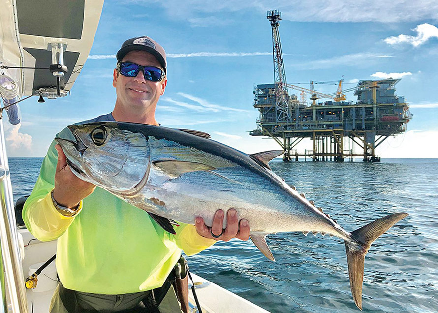 | Hard Targets Bridges, inlets, artificial reefs, oil rigs, and the Intercoastal Waterway are obvious fish attracters. Bridges can be excellent for striped bass, snook, tarpon, redfish, fluke, and grouper and snapper. Probing their up-current side with free-lined live baits, pitched bucktails, or trolled swimming plugs often leads to success. Inlet jetty points, where fish stalk prey in back eddies, are also prime. Providing traffic isn’t heavy, trolling swimming plugs through inlets and passes and along the ICW is an excellent way to locate fish and bottom structure. |