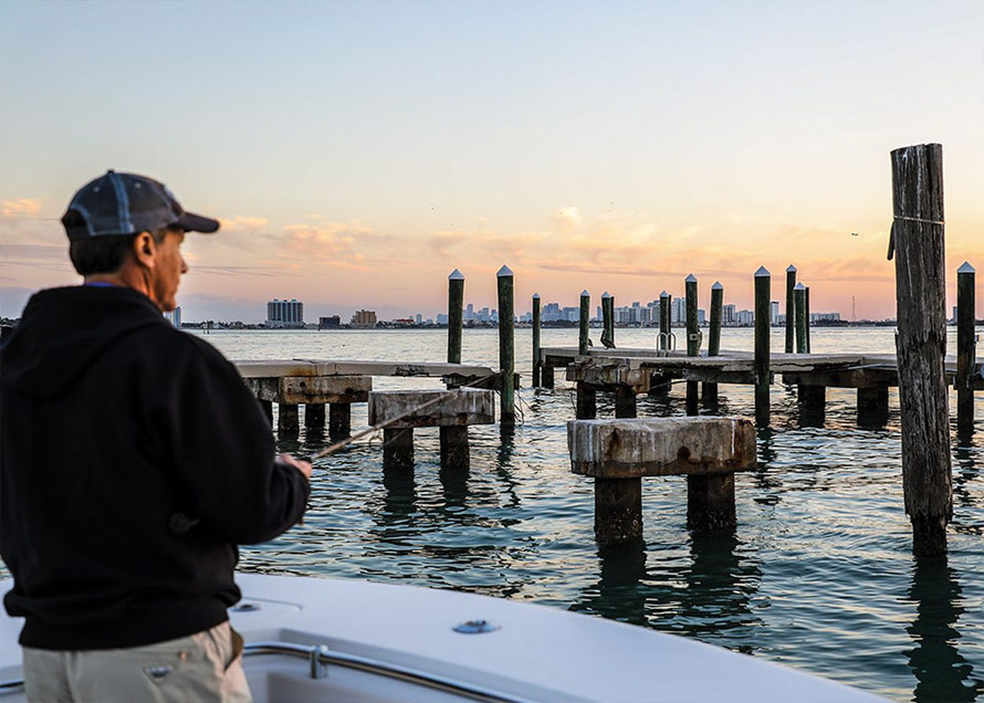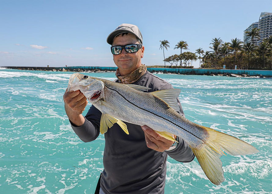 | Transition Zones Based on their respective inshore and offshore environments, transition zones vary widely. For instance, when seeking seatrout, sand holes interspersed among sea grasses make excellent targets. Here, trout ambush mullet, pilchards, pinfish and shrimp taking advantage of the camouflage provided by the surrounding grasses. As mentioned, ICW channels are fish havens. It’s within the transition zones along their edges, as well as any high points, rock formations and ruts within them, where fish gather. When night-fishing along bridges and docks, shadow lines provide cover for snook, striped bass, trout, tarpon and snapper. They ambush bait attracted to the bright side of the shadow line. Inshore rips, such as where a strong tide abuts a curving sea wall or shallowing bottom, are also transition zones. Again, gamefish station on the calmer side of the flow or along back eddies, gorging on bait swept by. Offshore transition zones include tide lines and rips, which are often marked by sharp color contrasts and weeds. These are bait-rich zones, with dirtier sides serving as cover for both prey and predators. |