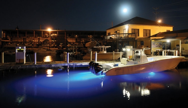 For in-hull fishing lights, LED technology now provides low-amperage and ultra-durable products that can withstand the pounding and abuse of rough seas. Unlike halogen and xenon/HID bulbs, LED lights do not throw off excessive heat and will not be damaged if accidentally left on when the boat is removed from the water. Surface-mount in-hull lights are becoming more in vogue compared to through-hull units, which require drilling a large hole in the vessel below the waterline to install fittings. By comparison, most surface-mount lights are affixed to the hull with screws and require just a single wire run through the hull.